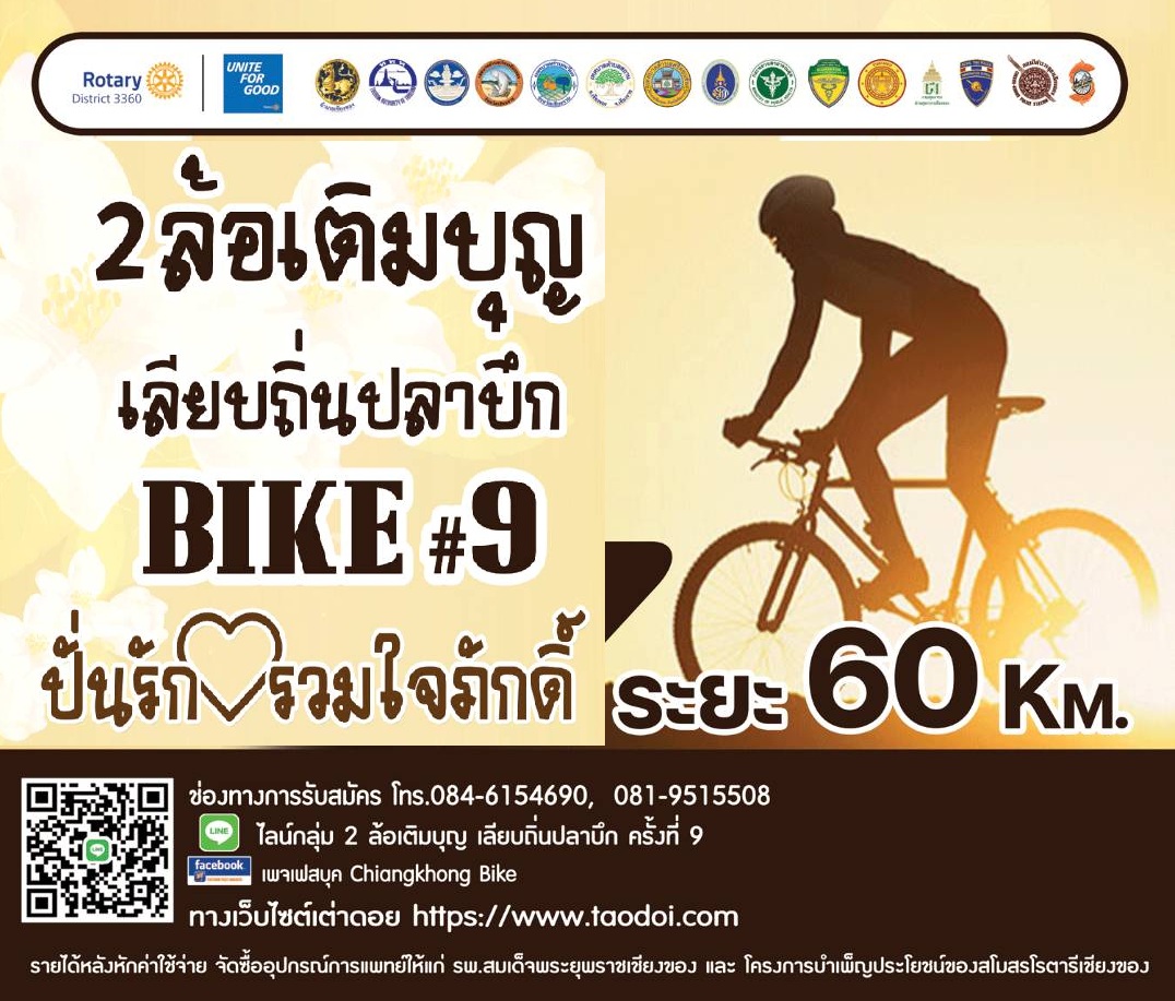 🌺วัตถุประสงค์การจัดงาน 1.เพื่อน้อมรำลึก ในพระมหากรุณาธิคุณ สมเด็จพระนางเจ้าสิริกิติ์ พระบรมราชินีนาถ พระบรมราชชนนีพันปีหลวง 2. เพื่อหาทุนสนับสนุน จัดซื้ออุปกรณ์การแพทย์ มอบให้แก่ โรงพยาบาลสมเด็จพระยุพราชเชียงของ 3. เพื่อหาทุนสนับสนุน โครงการบำเพ็ญประโยชน์ของสโมสรโรตารีเชียงของ ให้แก่ชุมชน ในอำเภอเชียงของและอำเภอใกล้เคียง 4. เพื่อส่งเสริมการท่องเที่ยวในอำเภอเชียงของ 5.เพื่อส่งเสริมการออกกำลังกาย เพื่อสุขภาพโดยการปั่นจักรยาน 🌺รายละเอียดของกิจกรรม เป็นกิจกรรมปั่นจักรยาน ปั่นฮอมบุญเพื่อหาทุนสนับสนุน ตามวัตถุประสงค์ของการจัดงาน โดย มีพิธีเปิด ณ ลานเสาพญานาค บ้านสบสม เทศบาลตำบลเวียงเชียงของ ปั่นตามระเบียงโขง ผ่านปลาบึกสีทอง - สู่ถนนสายหนองบัว บ้านโจ้โก้ เข้าสู่บ้านดอนมหาวัน ปั่นเข้าสู่เส้นทางคู่ขนานสะพาน เลี้ยวซ้ายสู่ด่านพรมแดนขึ้นสะพานมิตรภาพ ไทย-ลาว แห่งที่ 4 นักปั่นร่วมทำกิจกรรมยืนสงบนิ่ง เป็นเวลา 93 วินาที เพื่อถวายความอาลัยสมเด็จพระนางเจ้าสิริกิติ์ พระบรมราชินีนาถ พระบรมราชชนนีพันปีหลวง ปั่นกลับสู่ด่านพรมแดนประเทศไทย ปั่นตามเส้นทางลัด ตามเส้นทางหมู่บ้าน บ้านทุ่งงิ้ว - บ้านเต๋น - บ้านปากอิง จนถึงจุดทางเชื่อมถนนทางหลวง เชียงของ-เวียงแก่น สู่จุดเช็คอิน ณ จุดชมวิวห้วยเอียน ตำบลหล่ายงาว อำเภอเวียงแก่น ชมการแสดงต้อนรับ จากเทศบาลตำบลหล่ายงาว (ชมทัศนียภาพที่สวยงามของลำน้ำโขง) ปั่นกลับสู่อำเภอเชียงของ ตามเส้นถนนทางหลวง เวียงแก่น-เชียงของ สามแยกท่าเจริญ เลี้ยวขวาผ่านหมู่บ้านศรีดอนชัย-บ้านทุ่งงิ้ว-บ้านใหม่ทุ่งหมด-บ้านหาดไคร้ ผ่านชุมชนอำเภอเชียงของ ถึงแยกหัวเวียงซอย14 ปั่นลงเส้นทางระเบียงโขง ไปสิ้นสุด ณ ลานเสาพญานาค บ้านสบสม เทศบาลตำบลเวียงเชียงของ 🌺สถานที่การจัดงาน จัดกิจกรรม จุด Start - Finish ณ ลานเสาพญานาค บ้านสบสม เทศบาลตำบลเวียงเชียงของ 🌺รายละเอียดการรับสมัคร